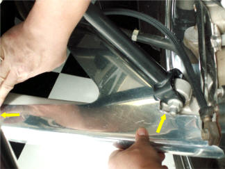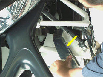 ![]() Picture 5 Slide the end cut out notch under the bolt as shown. |
