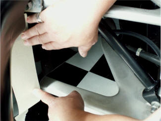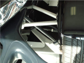 ![]() Picture 9 Here is the trickiest part of the whole assembly. Press the fender wall back in towards the car firmly as far as it will possibly go and hold. You may want someone else to do this while you position the A-Arm cover. Slide A-Arm cover over until it goes inside the A-Arm cut out on the fender. It is a tight fit but it will go in. |