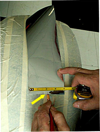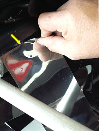 ![]() Picture 27 Carefully place the Foil along the "TOP" of the Top Stabilizer Arm as shown. |