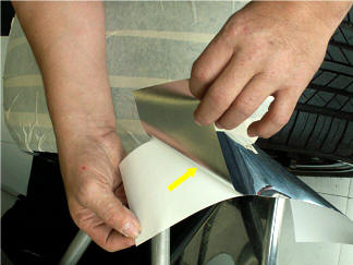![]() Picture 26 Carefully peel back the back side. Be careful not to crease the foil piece. |