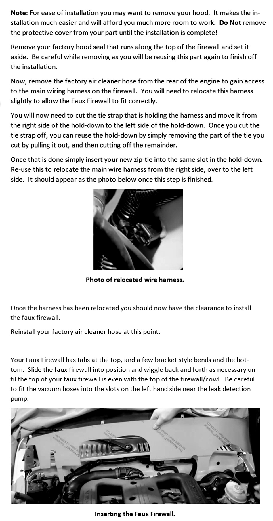 PROWLER STAINLESS STEEL Firewall COVER PART# ACC-823047 INSTALLATION INSTRUCTIONS