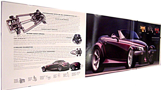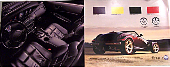 Brochure for the 1999 Model Year Historical Collectors item 10" X 13" when folded. 10" X 39" When fully opened. High lights the 1999 Purple Prowler with chrome wheels and the Black Prowler on the front cover offered for first time. ![]() Cover