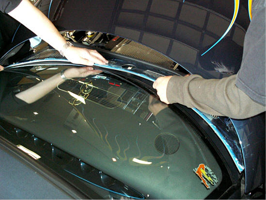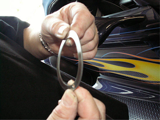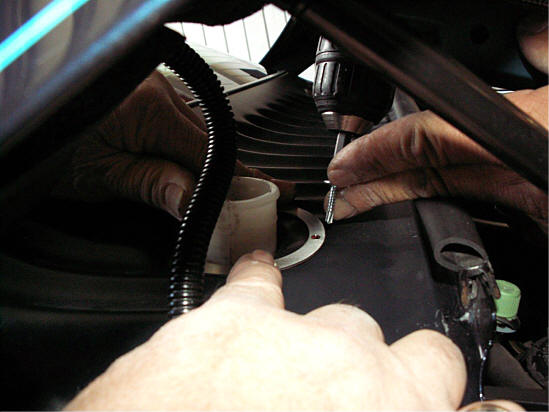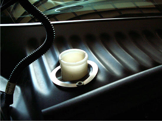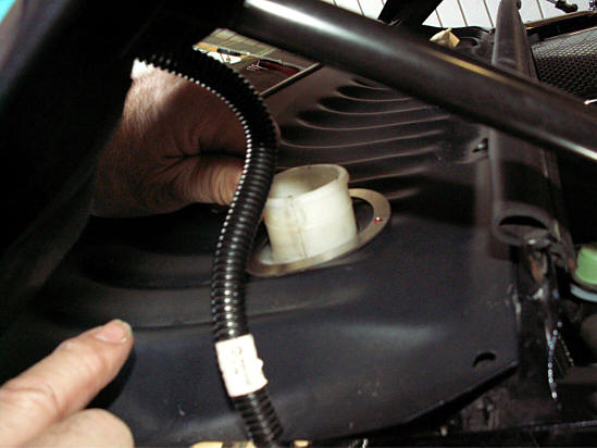 Insert ring over tank intake neck and pull forward. Hold in place and