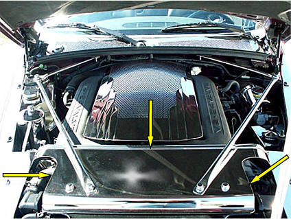 2 - High Polished Stainless Steel metal strips for the top of the engine manifold as shown.