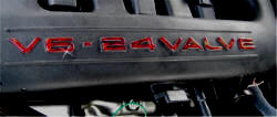 vinyl letters "V-6 24 VALVE" one for each side of manifold.