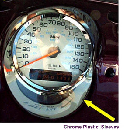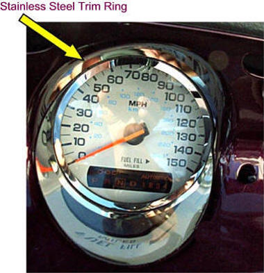 high polished stainless steel Sleeves fits inside the five dash panel gauges. This brightens up and
