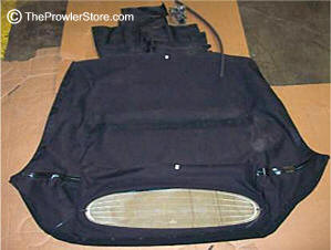 Top - Cloth only Black or Dark Blue or a custom Color! This is an aftermarket top using the same design and the same material as the factory original. Includes window with defogger. Choice of colors Black or Blue.