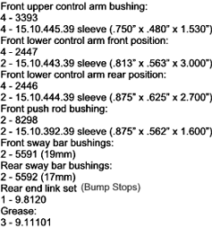 nimble control like a race car. Feel the difference. Includes upgrade bushings for: * Does not include "Trailing Link bushings"