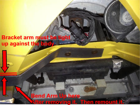 the tow bolts remover earlier. It is important that the bracket bolts up
