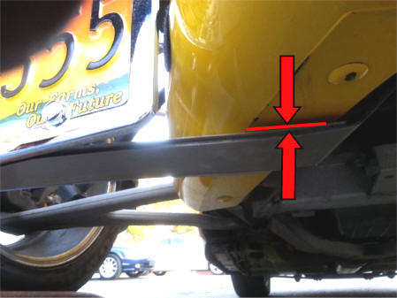 First hold the bracket up under the car where it will be mounted.