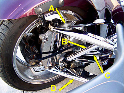 A = Top A-Arm Cover; B = Stainless Steel long Slit Tube; C =