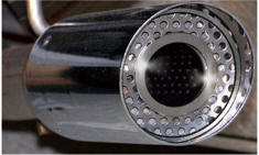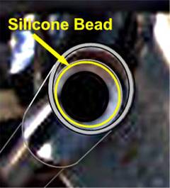 4.  Take a tube of High Heat silicone adhesive sealant (included) and apply a thick 1/4 inch bead of silicone around on the inside perimeter on your car’s exhaust tip.  Now seat each insert on your cars exhaust tip where your new inserts should mount.  You should use a fairly a liberal amount.  On the ACC-822060 Star Design after you apply the silicon you will push the star design into the exhaust tip.  The outer tips will automatically bend in place.