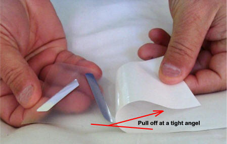 8. Take one of your new emblems and gently peel the white stiff paper backing off